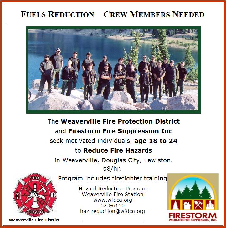 Scott Alvord, Interim Weaverville Fire Chief, has applied for funding under Title III of the Federal Secure Rural Schools and Community Self-Determination Act. “If the Board of Supervisors act favorably, the crew can be back to work this winter,” Alvord said.