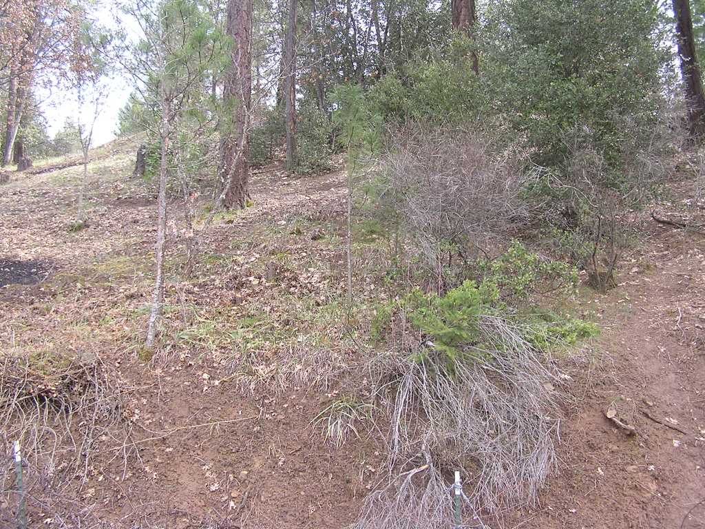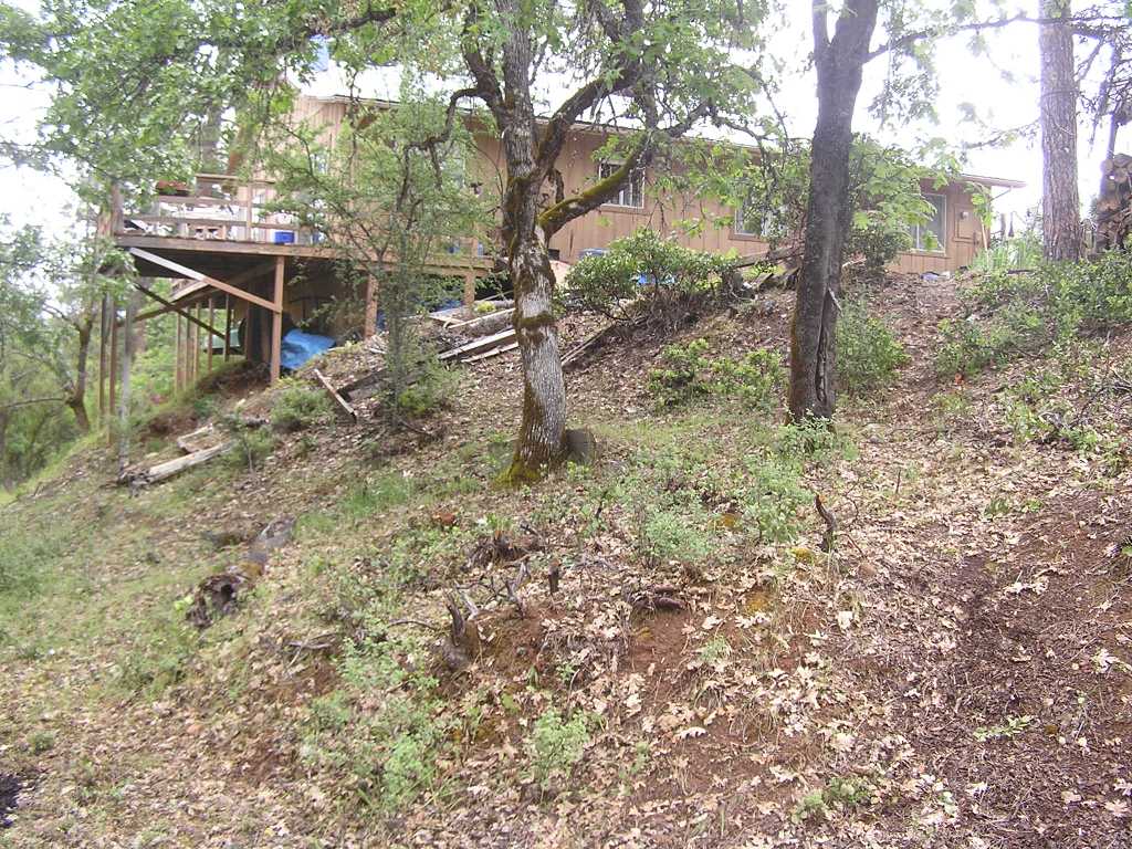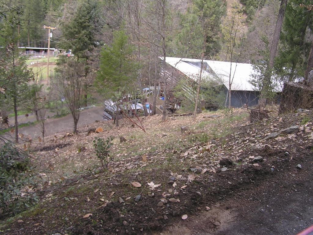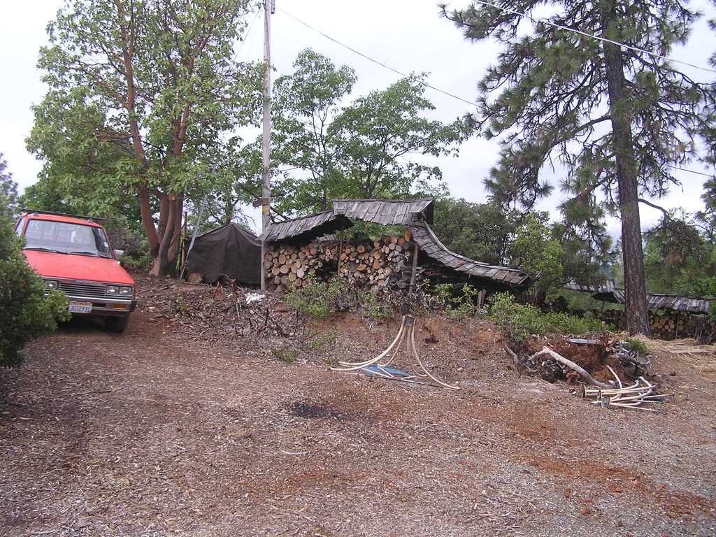 2 photos taken from about the same spot (note the trees and power pole in both). The woodshed was there before, but was completely obscured by high thick manzanita.