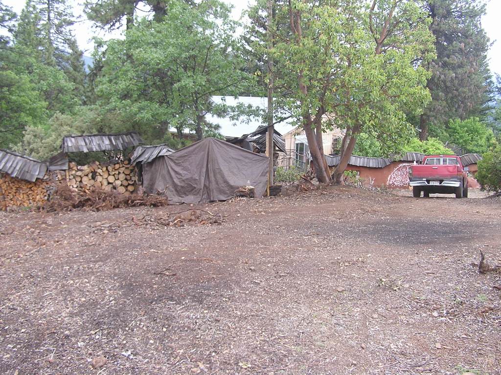2 photos taken from about the same spot (note the mural on the wall). The house and woodshed were completely obscured by thick manzanita.