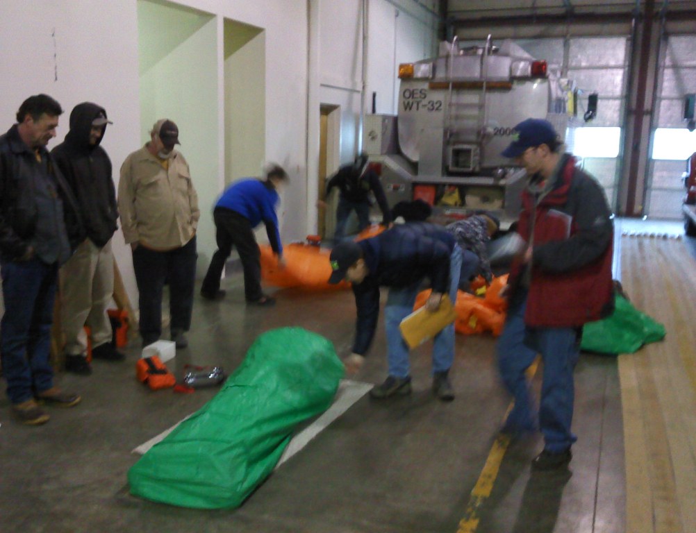 19mar: Weaverville Volunteers instructed contractors today in the use of fire shelters, part of Fireline Safety Awareness training at the Weaverville Fire Station. Attendees receive a State Fire Marshall certificate, required for support personnel on wildland fires. photo...