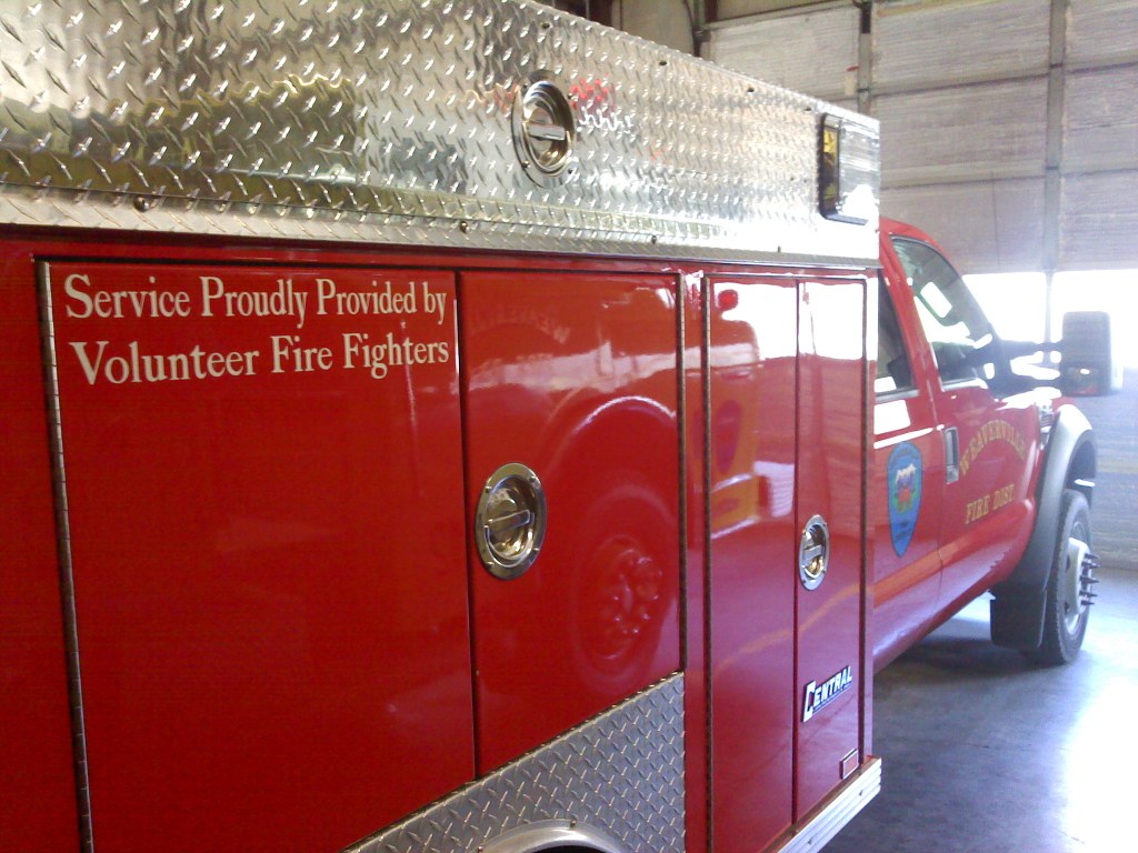 6apr: WFD Apparatus will display the message: "Service Proudly Provided by Volunteer Fire Fighters". Volunteers Todd Corbett and Ernie Curran are doing the work. photo...