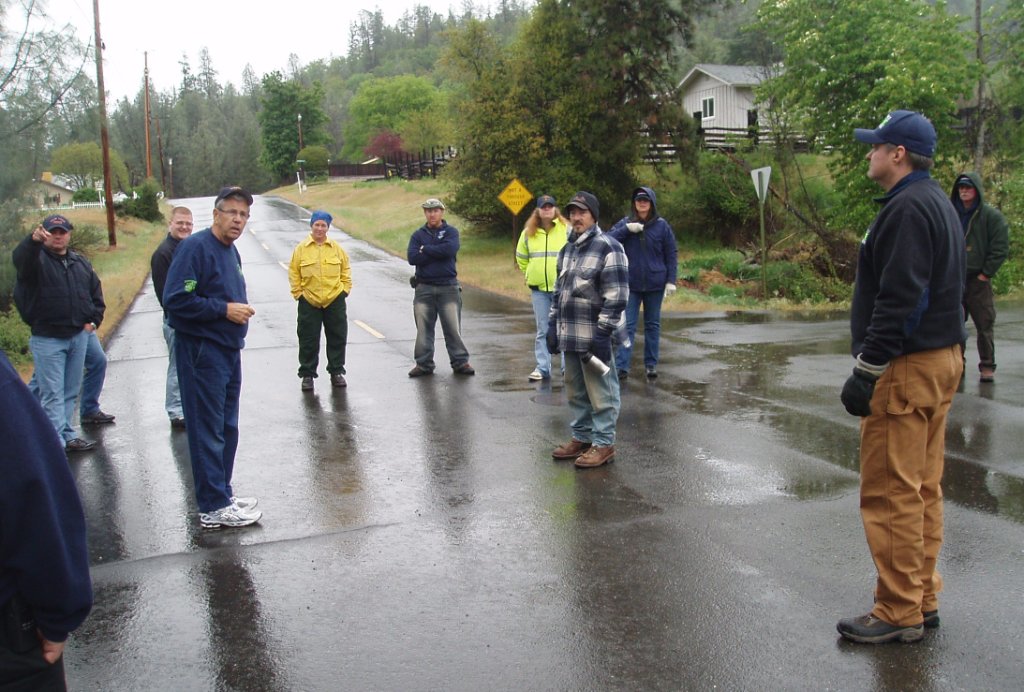 15may: Weaverville firefighters, plus volunteers from 5 other Trinity County departments, attended 2 and a half days' training in Wildland-Urban Interface fires. Nationally-respected instructor J.P.Harris used field trips to various neighborhoods in town to illustrate issues in defending structures against fire. photo...